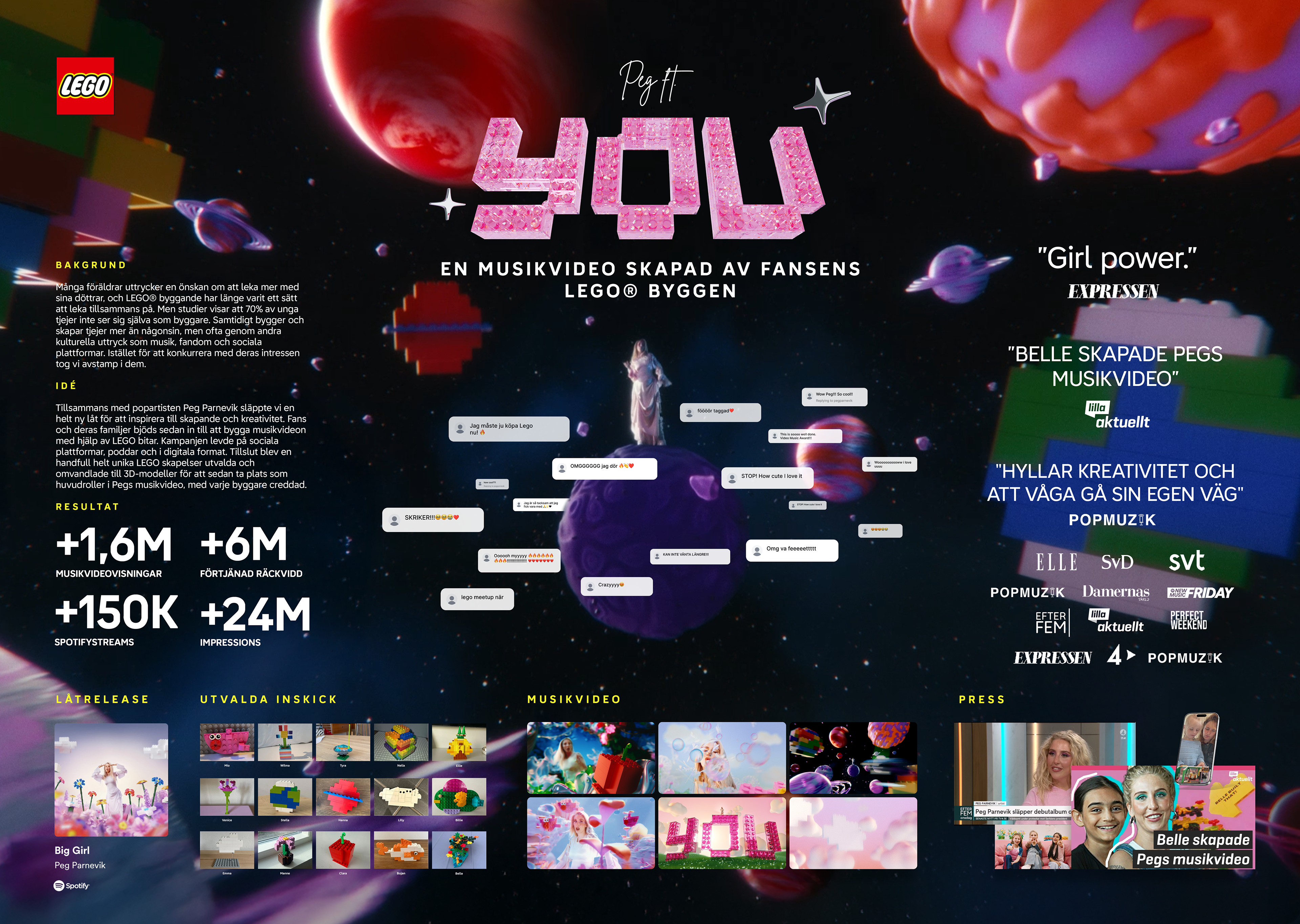 Tillsammans med popartisten Peg Parnevik släppte vi en helt ny låt för att inspirera till skapande och kreativitet, och bjöd in hennes fans till att skapa musikvideon med hjälp av LEGO!